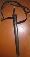 Материалы: клинок - стеклотекстолит СТЭФ-У 10мм; гарда/рукоять - сталь; обмотка - кожаный шнур; ножны/перевязь - кожа чепрак КРС 4мм.
