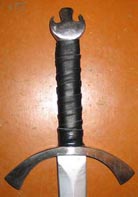 Материалы: клинок - стеклотекстолит СТЭФ-У 10мм; гарда - сталь; обмотка - кожаная лента.